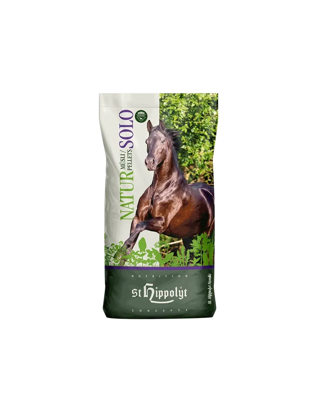 NaturPellets SOLO skiller sig ud ved det høje indhold af protein og fibre sammen med det lave indhold af stivelse. Anvendelsen er alsidig og er velegnet både til den energikrævende hest i arbejde, den nøjsomme hest, som skal kunne vedligeholde sine muskler og den ældre hest, som bliver følsom i sit stofskifte og sin muskelsætning.