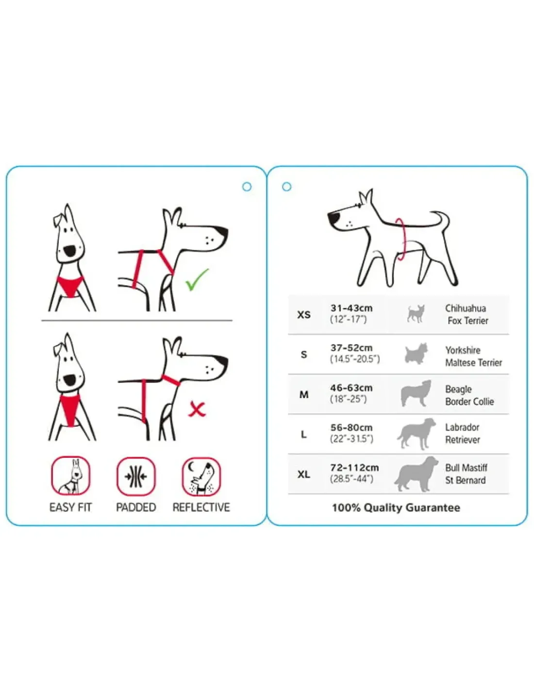 Denne sele er udstyret med bløde fleece-forede paneler og indvendig polstring, der giver din hund en behagelig oplevelse – selv ved længere ture.