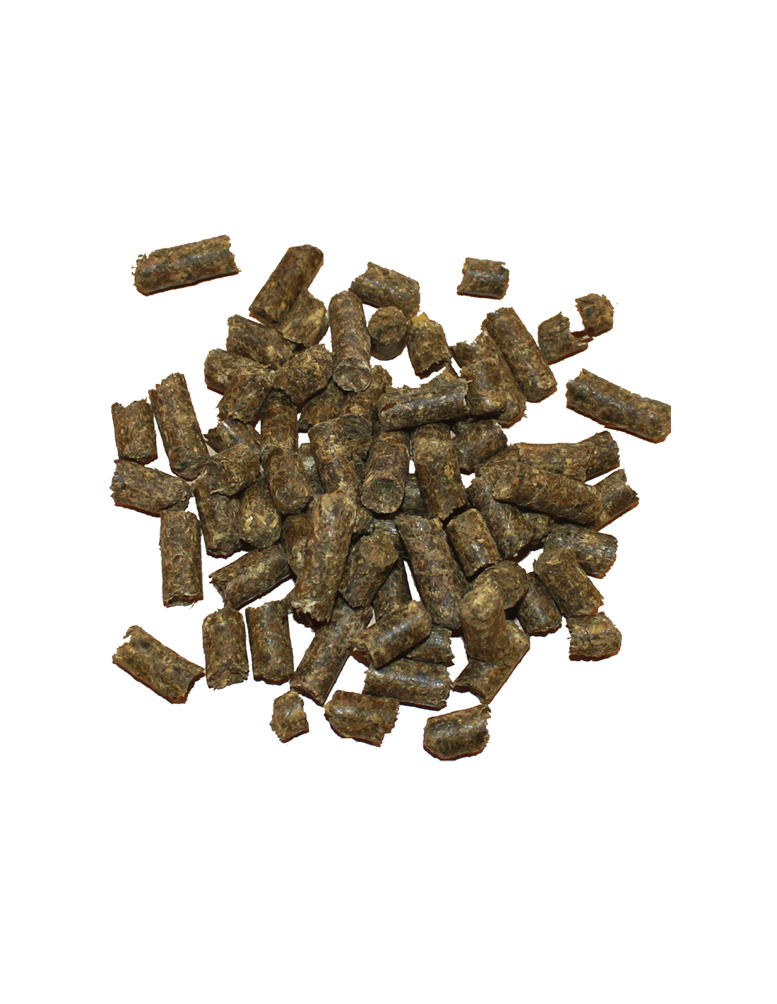 Sojaflager hydrotermisk forbehandlet*, snittet varmlufttørret alpehø, roefibre, ærteprotein, PalaSyrup (Isomaltulose mol.)