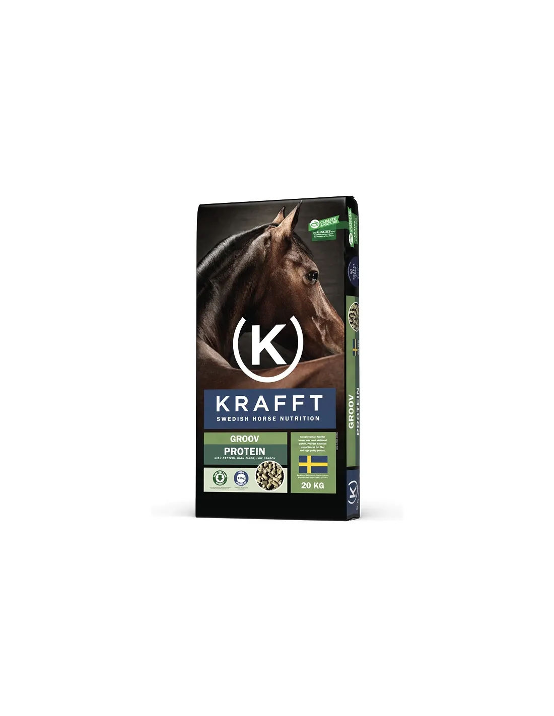 Suppleringsfoder som sikrer indtaget af kvalitetsprotein og fibrer hos alle heste. højt indehold af protein. Anbefales som erstatning for tidligere GROOV 125.
